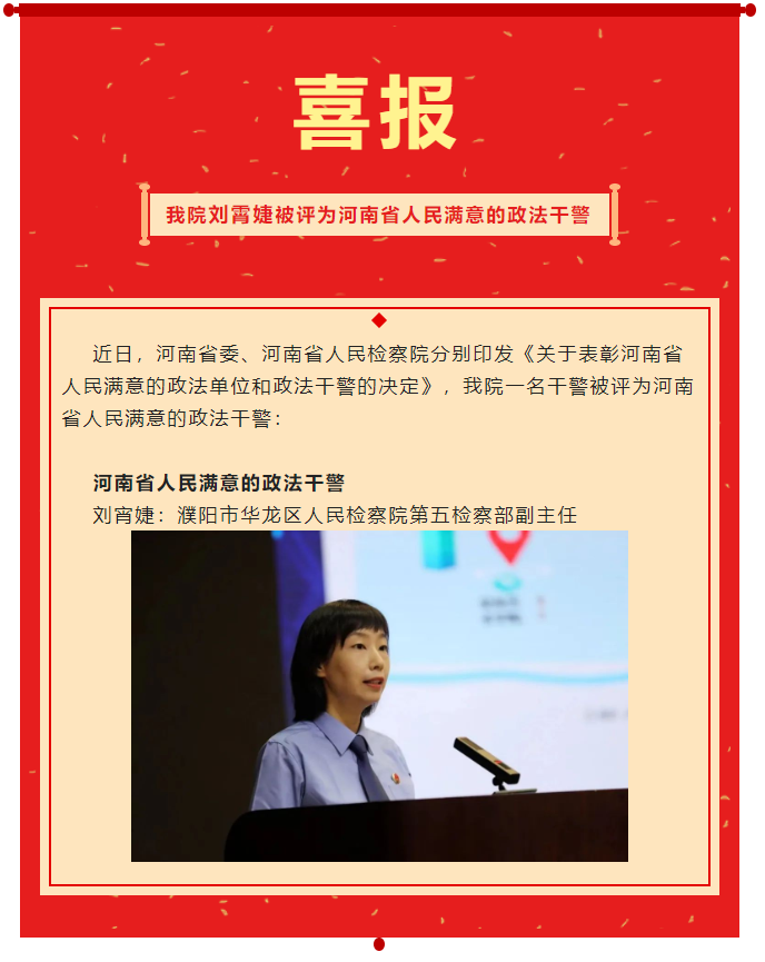 【喜报】我院一名干警被评为河南省人民满意的政法干警