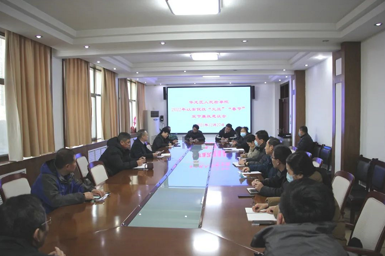 2021年12月27日,华龙区人民检察院采取“三会合一”的形式召开党组中心组“扩大”会、2022年以案促改“元旦”、“春节”双节廉政恳谈会、年终收尾工作会。会议由党组书记、检察长韩德岗主持,中层以上干部参加会议。