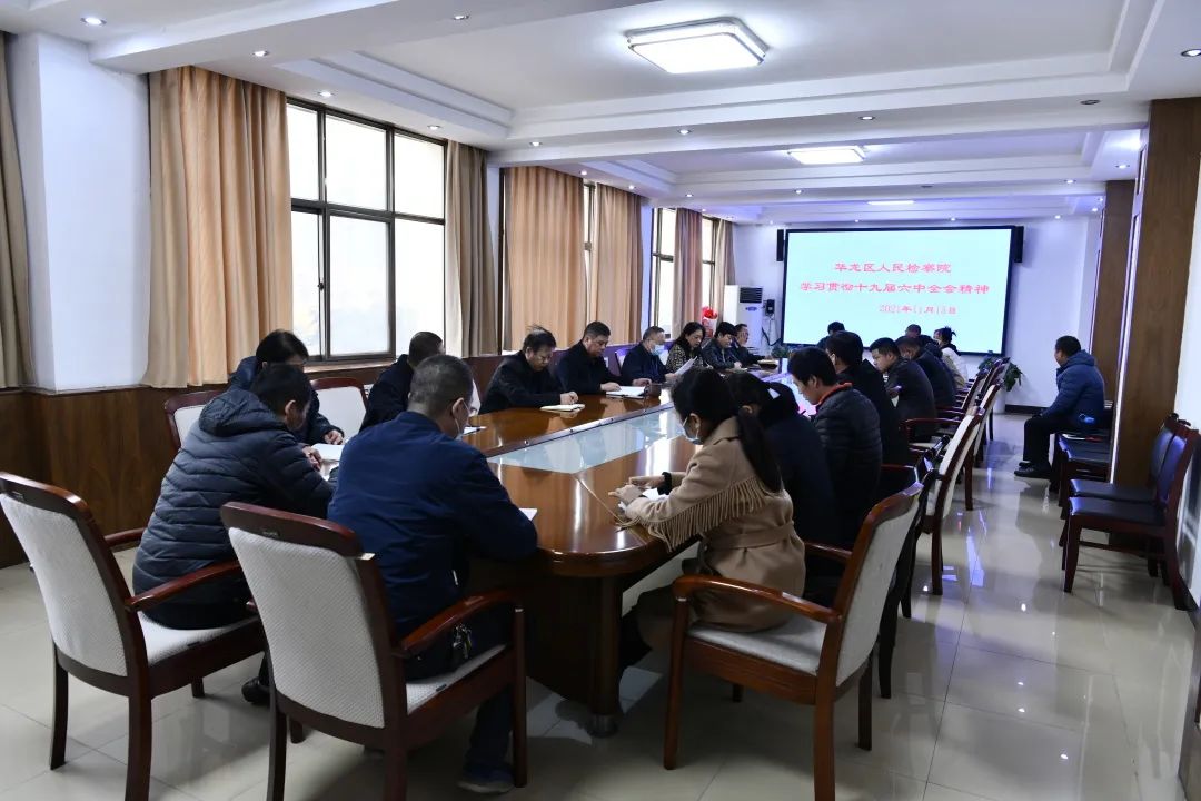 中国共产党第十九届六中全会于2021年11月8日至11日举行。11月12日上午,中共中央举行党的十九届六中全会精神新闻发布会。11月15日上午,华龙区检察院党组中心组扩大会议第一时间学习贯彻全会精神,掀起学习热潮,从百年党史汲取不懈奋斗的力量。
