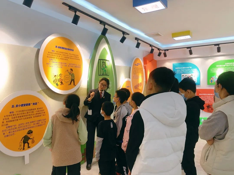 同学们被展厅内的彩色的宣传展板与普法视频深深吸引,讲解员用生动有趣的语言介绍了相关法律知识,让同学们提高警惕。