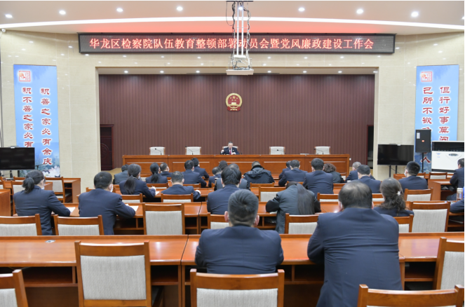 3月8日晚,华龙区人民检察院召开教育整顿活动部署会暨党风廉政建设工作会,院党组书记、检察长韩德岗发表讲话,全体干警参加了会议。