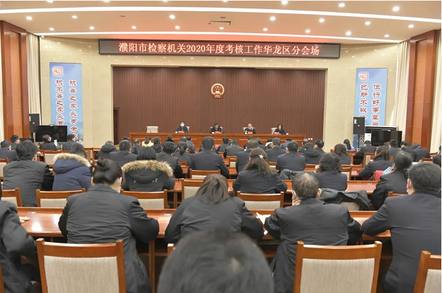 考评汇报会在东三楼会议室举行,市检察院考评组及华龙区院全体干警参加,会议由华龙区院党组副书记、常务副检察长郝红伟主持。