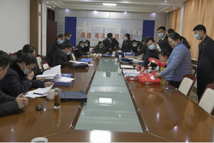 会后,市院考评组来到主楼三楼会议室,进行年度考评资料查阅工作。