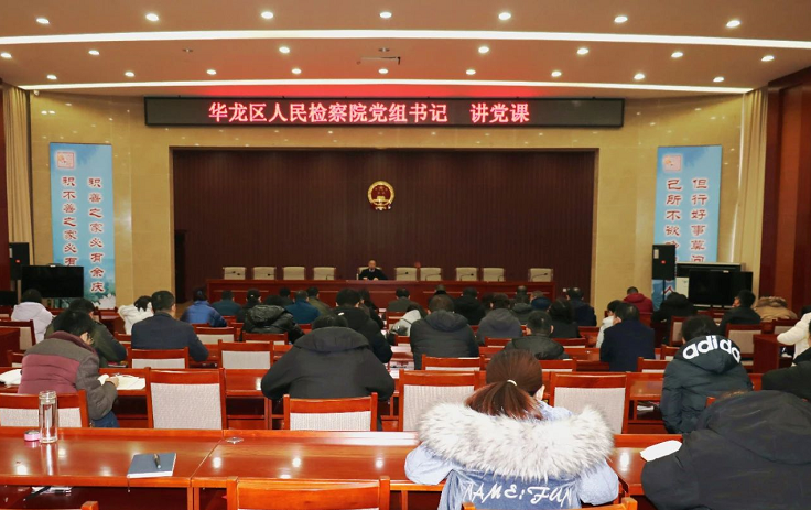 2020年12月14日,华龙区人民检察院党组书记、检察长韩德岗以“讲党性 转作风 做新时代合格检察官”为主题讲了一堂生动党课,进一步要求本院干警增强群众感情,做好为民实事;坚持原则、廉洁奉公;热爱工作、任劳任怨,全心全意为人民服务。