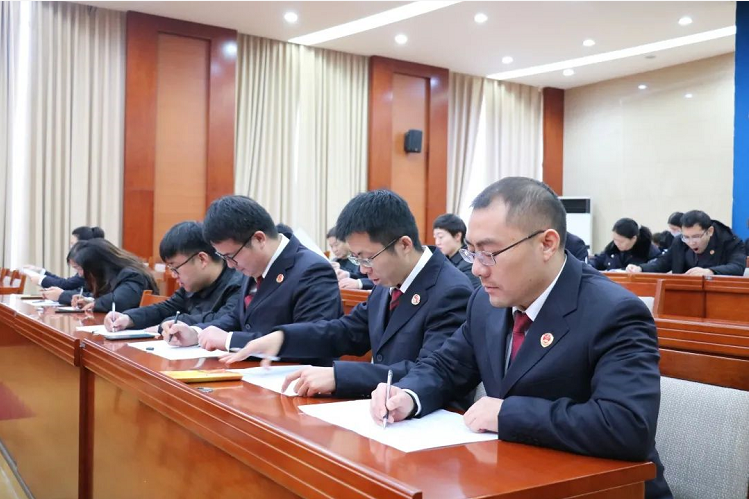 在宪法宣誓后,全院干警参加《中华人民共和国宪法》知识测试等环节的活动。