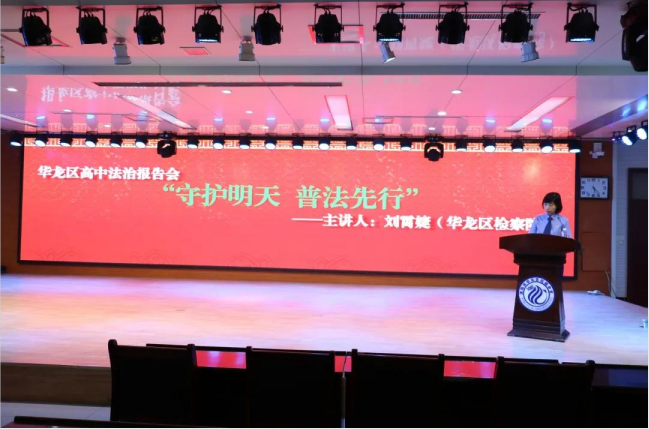 为加强未成年人法治教育,共建法治校园,使广大青年通过法治教育知法守法、明辨是非,华龙区检察院未检春晖工作室受濮阳市华龙区高级中学初中部邀请参加法治公开课,9月7日下午华龙区检察院第五检察部未检部门负责人刘霄婕以“守护明天、普法先行”为主题,为孩子们送去了一场法治盛宴。