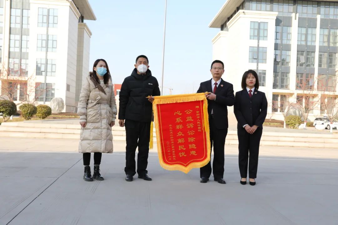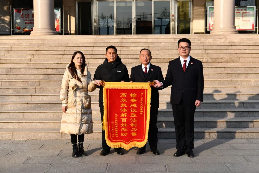 社区干部和居民心里非常高兴,自发向检察干警赠送锦旗致谢,和检察干警交流时笑得非常开心。