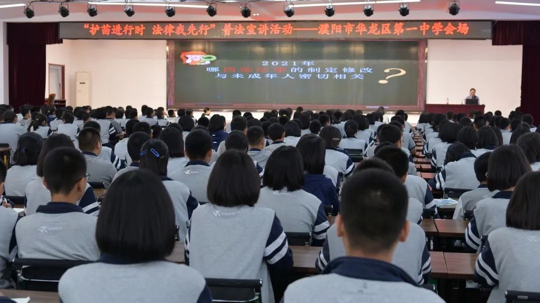 为提高青少年的法治意识,预防减少未成年人犯罪,构建安全和谐的校园环境,在六一国际儿童节来临之际,5月25日下午,华龙区检察院到华龙区第一中学开展“护苗进行时 法律我先行”主题法治进校园活动。