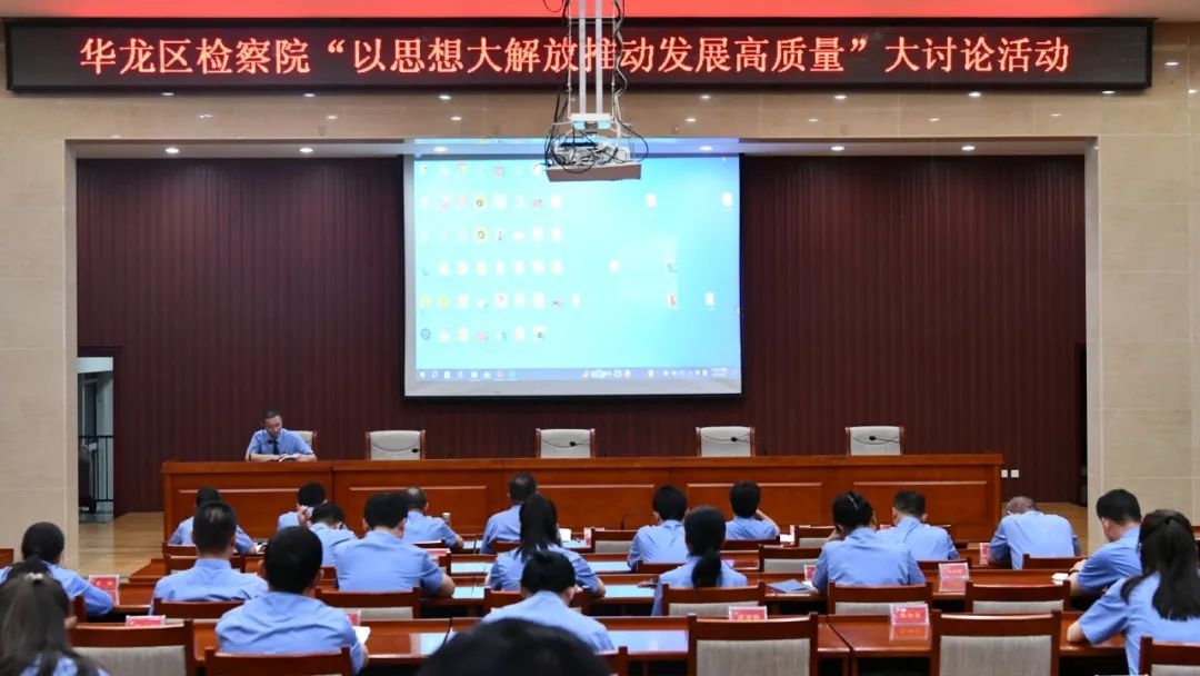 为进一步深化能力作风建设,建设“五型”检察机关锻造检察铁军,9月7日晚,华龙区检察院以“以思想大解放推动发展高质量”大讨论活动为载体,举办“华检论坛”活动。活动由院政治部干警李剑主持,全体干警参加了活动。