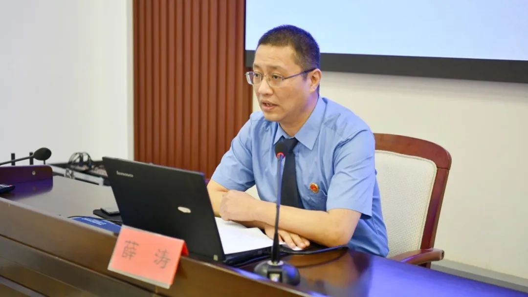 竞赛开始前,党组成员、政治部主任薛涛就书记员的岗位职责、常见法律条文、卷宗管理等问题为大家讲了一堂生动的业务实操讲座。