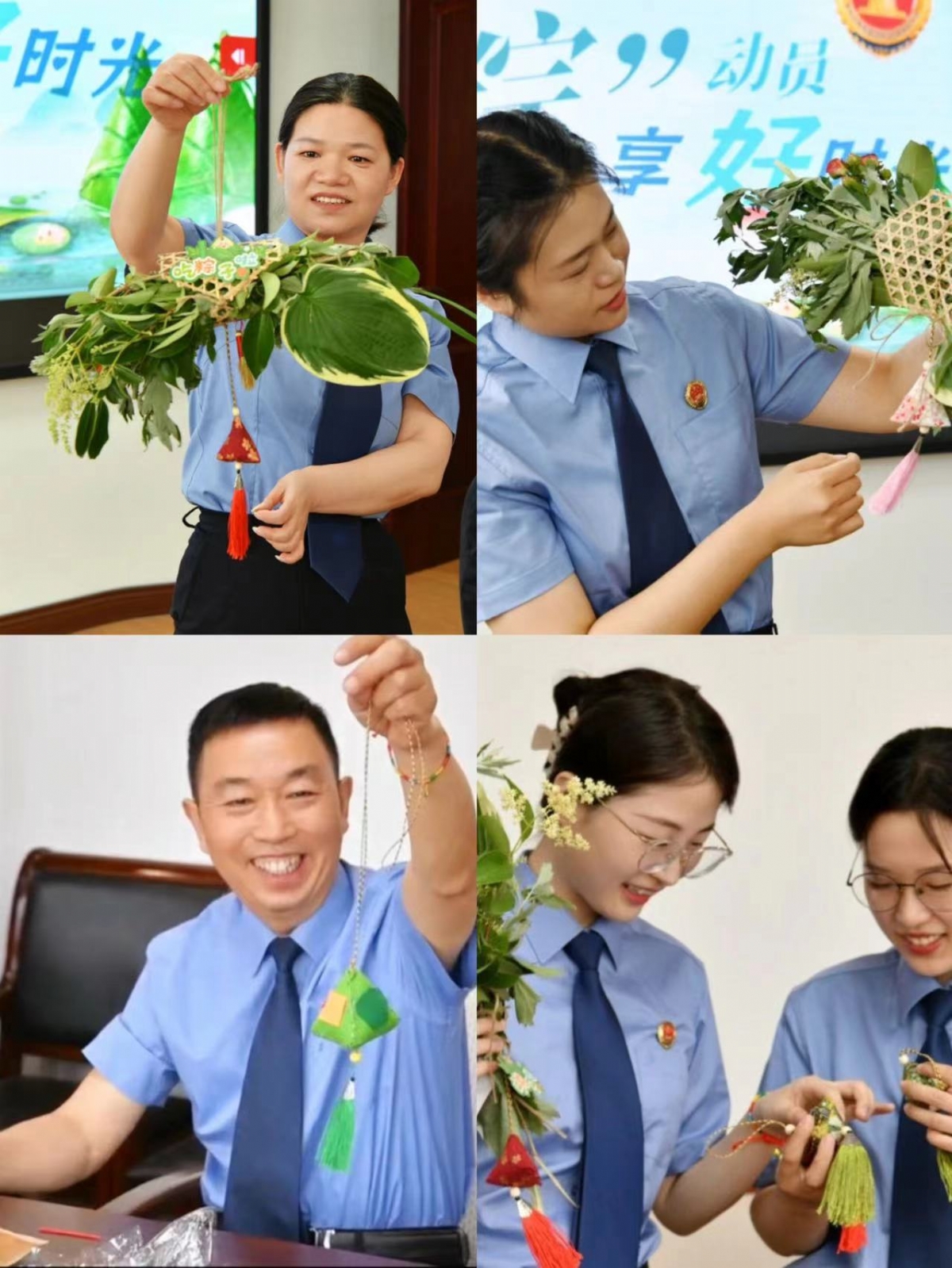 干警们聚在一起,通过艾草插花、香包制作、五彩编绳、艾草锤制作等形式,在忙碌的工作中享受到动手的乐趣和佳节的喜庆,同时也学习到传统文化中“艾”的知识和养生观念。