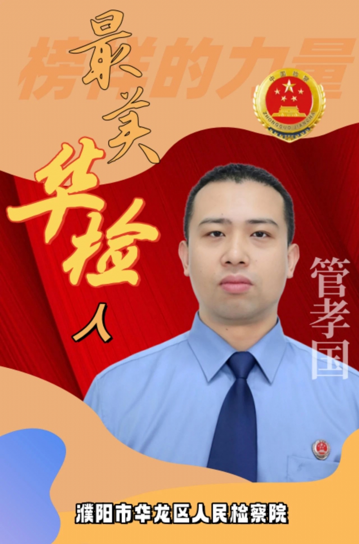 刑法执行察部干警管孝国入职以来,先后在第二检察室、刑事执行检察局、刑事执行检察部工作,2016年8月到刑事执行检察部门后,按照部门工作安排,以司法工作人员职务犯罪查办为主,并派驻濮阳市看守所检察室工作,同时参与省、市院组织的看守所、监狱巡回检察。入院以来,先后多次被华龙区人民检察院评为“先进个人”,参与办理的“濮阳市看守所干警违法传递物品监督案”被评为全省检察机关刑事执行检察部门十佳纠正违法案件、“黄某某羁押必要性审查案件”、“王某某徇私枉法案”入选市院精品案件,先后获得“华龙区人民满意的政法干警”、“华龙区十佳政法干警”称号。理论武装头脑