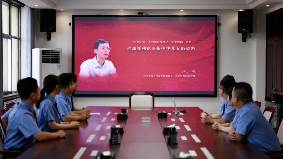 部分青年干警集中观看党史了“微课堂”《抗战胜利是全体中华儿女的荣光》,中共中央党校(国家行政学院)中共党史教研部卢毅教授,围绕“国民党在全国抗战中的表现、中国共产党对全国抗战的贡献、抗日战争胜利的意义和启示”三个问题,讲述了国共两党在为民族独立的抗日战争中所做出的杰出贡献。