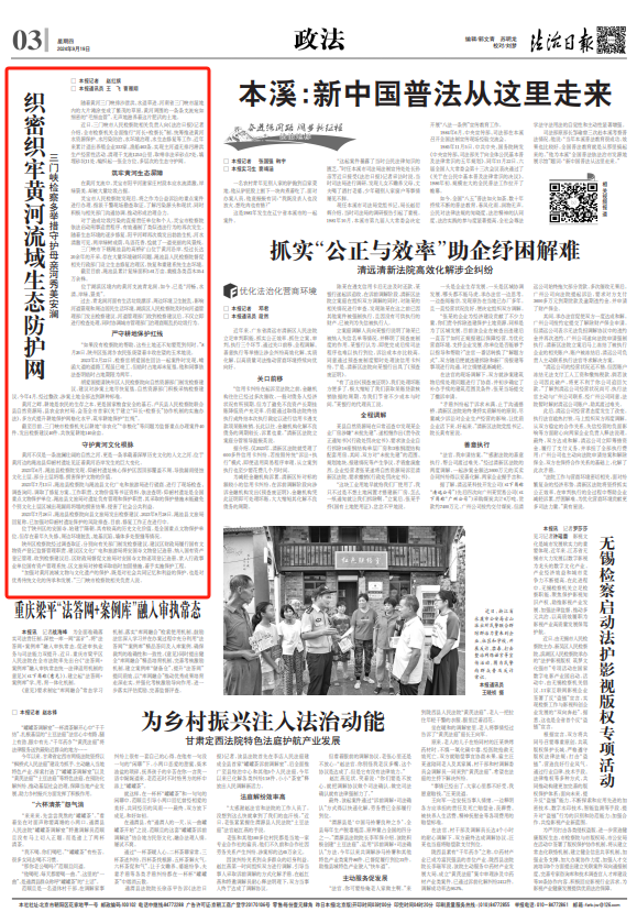 随着黄河三门峡排沙泄洪、水退草进,河南省三门峡市湿地内的大片滩涂变成了繁茂的草原。黄河周围的一条条支流宛如细密的“毛细血管”,无声地滋养着这片肥沃的土地。近日,三门峡市人民检察院相关负责人向《法治日报》记者介绍,全市检察机关全面推行“河长+检察长”制,统筹推进黄河水资源保护、水污染防治、水环境治理、水生态修复等工作。近年来累计退出养殖企业333家、渔船463条,实现主河道无排污滞洪生产经营性活动,清理干支流125.5公里,取缔非法采砂点7处,填埋砂坑11处,编织起一张全方位、多层次的生态守护网。筑牢黄河生态屏障在黄河支流中,灵宝市阳平河谢家庄村段本应水流清澈、岸绿景美,却被大量垃圾占据。灵宝市人民检察院发现后,将之作为公益诉讼的重点案件进行办理,指派干警现场勘查取证,了解污染源头和现状,同时积极与相关部门沟通协调,推动形成治理合力。对于造成垃圾污染的直接责任单位和个人,灵宝市检察院依法启动刑事追责程序,有效遏制了类似违法行为的再次发生。随着生态环境的逐步修复,阳平河畔再次焕发出勃勃生机,河水清澈可见,两岸绿树成荫,鸟语花香,绘就了一道亮丽的风景线。三门峡市下辖渑池县的高桥矿山位于黄河沿岸,经过长达20余年的开采,存在大量环境破坏问题。渑池县人民检察院督促相关行政部门设立生态修复治理区,恢复和重建系统生态环境。截至目前,渑池县累计复绿面积1.61万亩,栽植各类苗木35.4万余株。位于湖滨区境内的黄河支流青龙涧,如今,已是“河畅、水清、岸绿、景美”。过去,青龙涧河面有生活垃圾漂浮,周边环境卫生脏乱,影响河道景观和周边居民生活环境。湖滨区人民检察院及时向河道管理部门发出检察建议,河道管理部门收到检察建议后,不仅立即进行检查处理,同时协调城市管理部门治理商贩乱扔垃圾行为。严守耕地保护红线“如果没有检察院的帮助,这些土地还不知要荒到何时。”8月26日,陕州区张湾乡农民张庚望着丰收在望的玉米地说。2023年3月22日,检察官胡爱国在回访一起案件时发现,崤函大道的道路工程虽已竣工,但临时占地却未复垦。他和同事依法查明临时占地期限为两年。胡爱国提请陕州区人民检察院向自然资源部门制发检察建议,建议对涉案土地尽快复垦。自然资源部门积极采纳检察建议,今年4月,经过整改,涉案土地全部达到耕种标准。黄河之畔,耕地是农民的生存之本,更是国家粮食安全的基石。卢氏县人民检察院联合县自然资源局、县农业农村局,会签全市首家《关于建立“田长+检察长”协作机制的实施办法》,多方式提升耕地保护网格化水平,筑牢耕地保护“红线”。截至目前,三门峡市检察机关以耕地“非农化”“非粮化”等问题为监督重点办理案件40件,发出检察建议40件,共恢复耕地140余亩。守护黄河文化根脉黄河不仅是一条波澜壮阔的自然之河,更是一条承载着深厚历史文化的人文之河。位于黄河边的渑池县仰韶村遗址见证着黄河沿岸发生的巨大变化。2023年6月,渑池县检察院发现,仰韶村遗址核心保护区因顶部覆盖不周,导致漏雨侵蚀文化土层、部分土层坍塌,损害保护文物的价值。2023年7月13日,渑池县检察院与渑池县文化广电和旅游局进行磋商,进行了现场检查、调查询问,调取了修复方案、工作职责、文物价值等书证资料,依法查明:仰韶村遗址是全国重点文物保护单位,渑池县文旅局对遗址负有管理和保护职责,其采取的保护措施未能避免个别文化土层区域出现漏雨坍塌的损害结果,侵害了社会公共利益。2023年7月28日,渑池县检察院向县文旅局发出检察建议。2023年9月28日,渑池县文旅局回复称,已加强对仰韶村遗址保护的风险排查。目前,修复工作正在进行中。位于陕州区的安国寺,始建于隋朝,具有较高的历史文化价值,是全国重点文物保护单位,但存在着年久失修、周边环境脏乱、地基沉陷、墙体多处裂缝等情况。陕州区检察院经过调查取证,分别向有关部门制发检察建议,建议区财政局履行国有文物资产登记监督管理职责,建议区文化广电和旅游局将安国寺文物登记造册,纳入国有资产登记管理。收到检察建议后,区财政局督促文旅局对安国寺文物逐项登记造册,录入行政事业单位国有资产管理系统,区文旅局对钟楼采取临时加固措施,着手实施保护工程。“加强对黄河流域文物与文化遗产的保护,既是对社会共同记忆和利益的保护,也是对优秀传统文化的传承和发展。”三门峡市检察院相关负责人说。