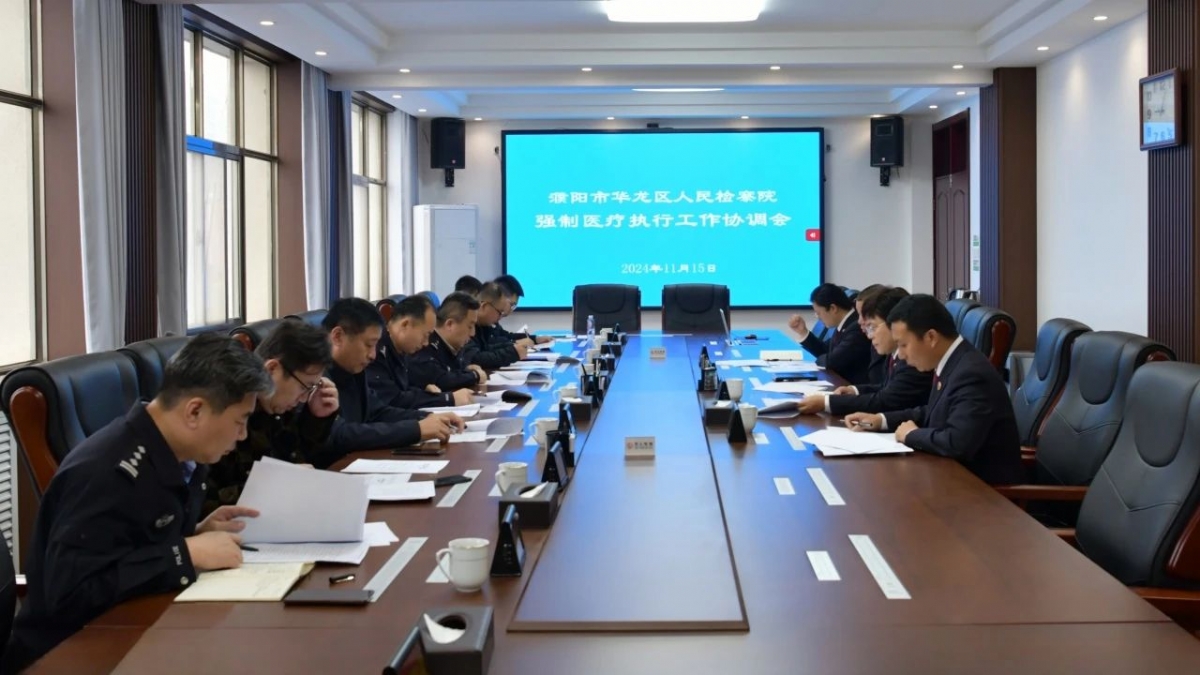 11月15日上午,华龙区人民检察院组织濮阳市公安局直属分局中原油田公安局直属分局、濮阳市精神卫生中心、华龙区人民法院、濮阳市公安局华龙区分局、经济技术开发区分局、城乡一体化示范区分局、工业园区分局召开强制医疗执行工作协调会。会议由华龙区人民检察院党组成员、副检察长唐亚杰主持。会议学习了省检察院关于组织开展检察机关强制医疗执行专项检察活动的通知、省法院司法建议书、检答网专家组答复;讨论了关于强制医疗文书送达不规范、沟通不顺畅的问题,并就如何规范强制医疗交付执行、解除等问题展开研究。