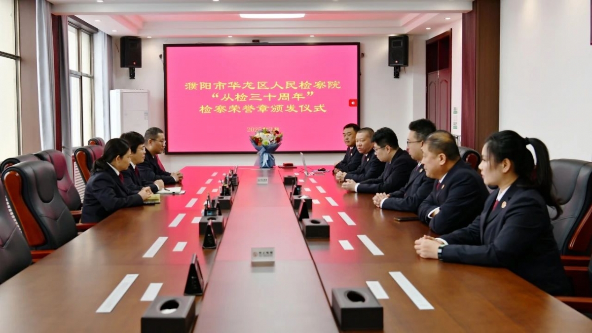 为弘扬检察职业精神,激励干警忠诚履职、接续奋斗,3月11日,华龙区人民检察院为从检30年的检委会专职委员王永忠举行荣誉章颁发仪式。院党成员、副检察长唐亚杰,党组成员、政治部主任薛涛及部分干警代表共同见证这一荣耀时刻。